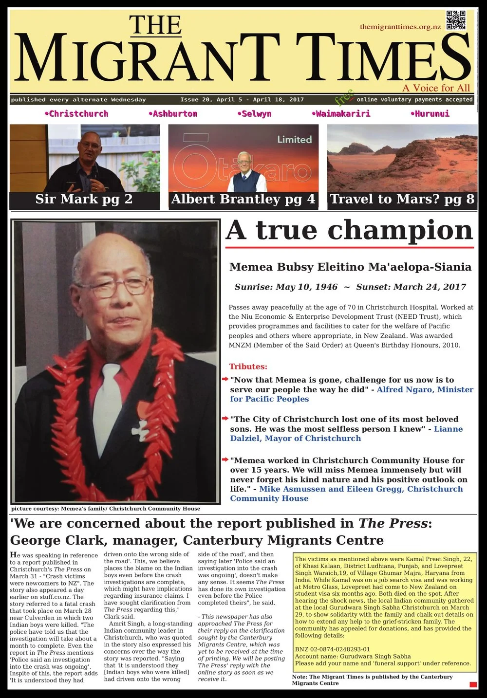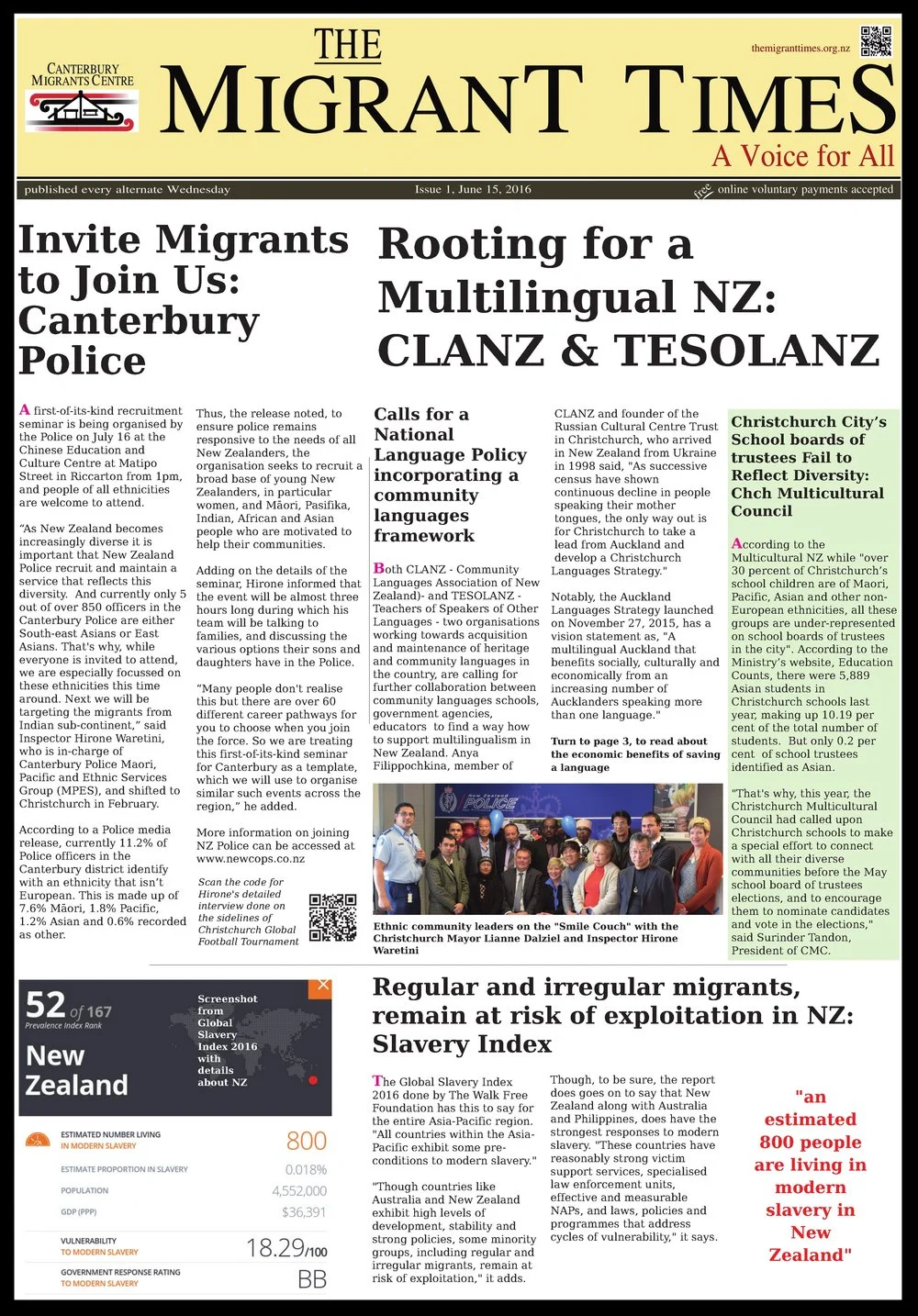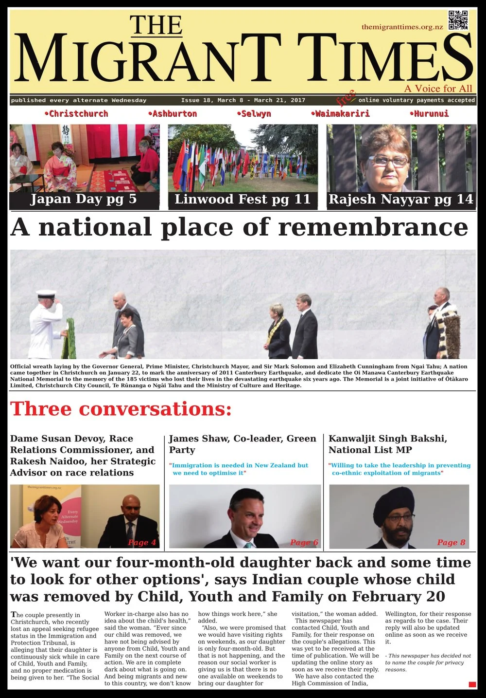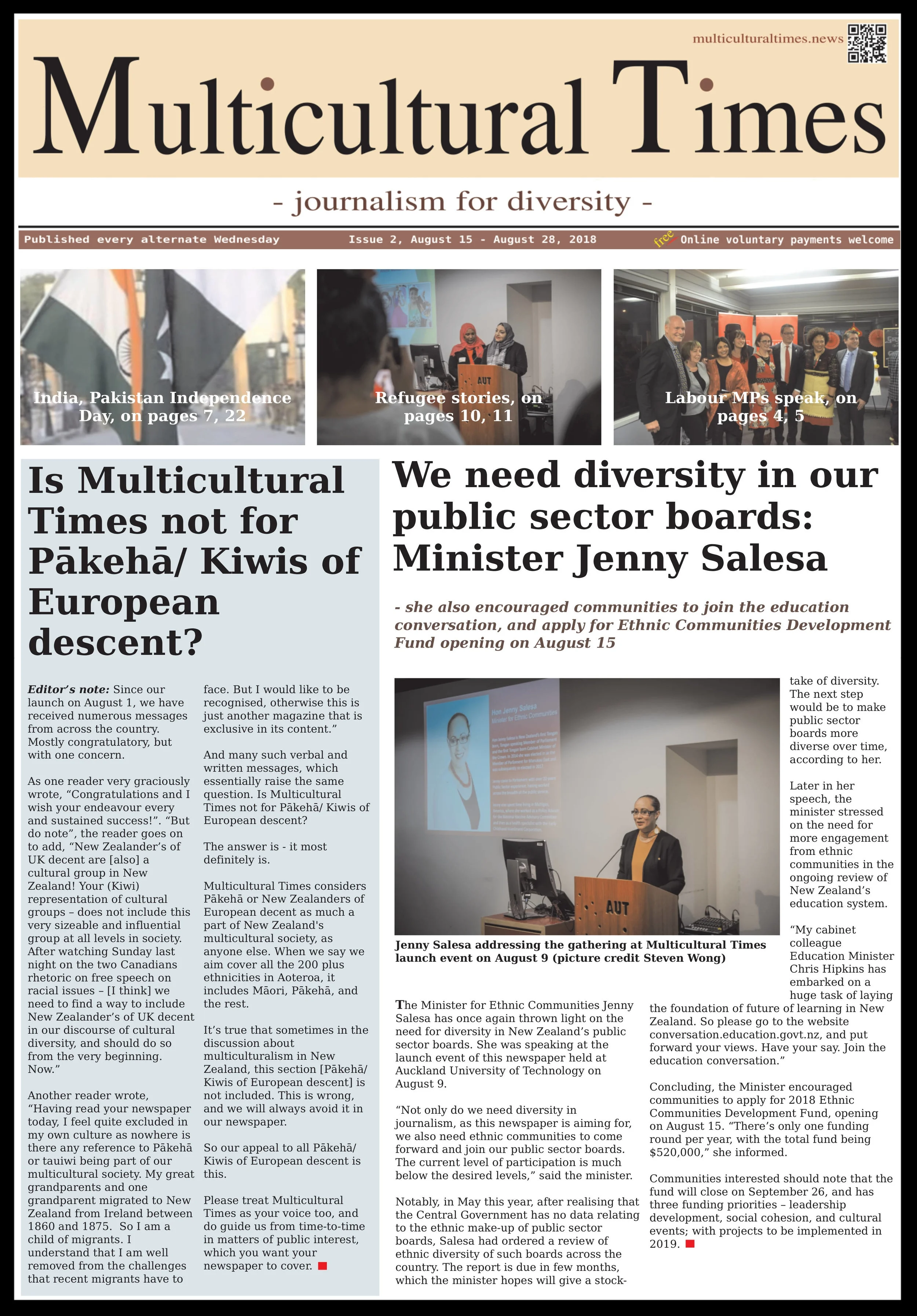Following are the 22 print editions of our earlier newspaper - The Migrant Times. All these can also be accessed at https://themigranttimes.org.nz/print-issues